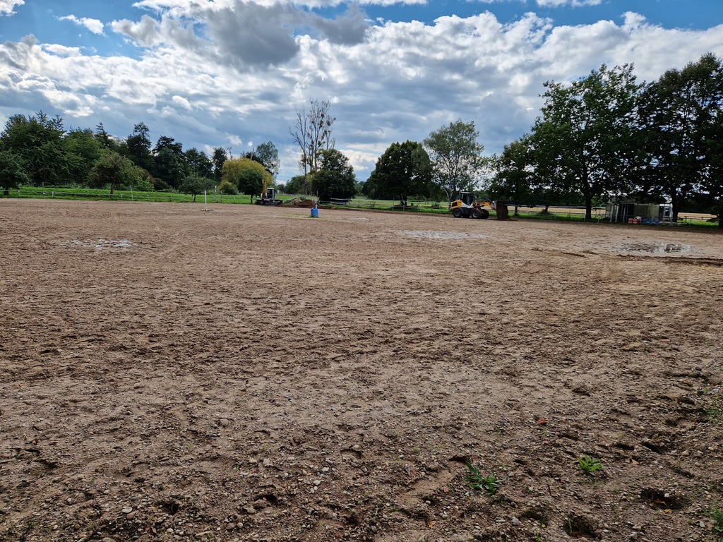 Es war ein Großprojekt (im August 2023), das sich definitiv gelohnt hat! Ein herzliches DANKE an alle Helfer, Unterstützer und Projektmanager! Der neue Springplatz - inklusive neuer Bewässerung! - ist einfach genial und die Pferde laufen super auf dem neuen Boden! :-)