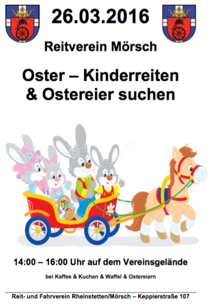 Kinderreiten und Ostereiersuche beim Reiterverein Rheinstetten am Ostermontag, 17.04.2017 von 11:00 - 14:00 auf dem Vereinsgelände.