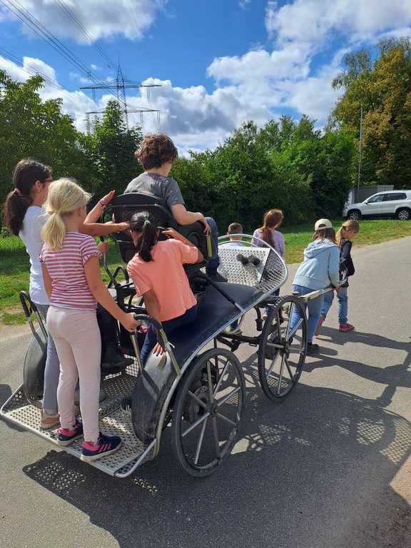 Auch dieses Jahr - wie jedes Jahr - hatten wieder 30 Kinder strahlende Augen. Sie durften 1 Tag auf unserer Anlage verbringen. Es wurde viel geboten! Hufeisen bemalen, Pferdequiz (Lösungen auf der gesamten Anlage zu finden), leckeres Essen, Reiten und dieses Jahr sogar mit einer Kutschfahrt! Alle Kinder hatten viel Spaß!